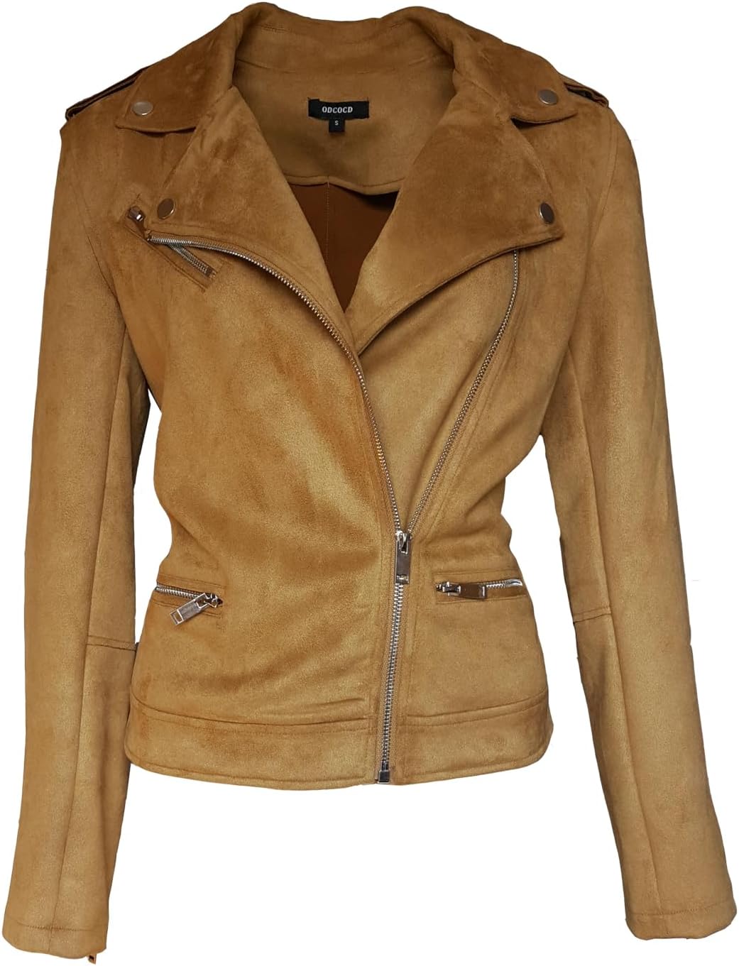 ODCOCD Faux Suede Jacket for Women Long Sleeve Zipper Up Casual Outwear (XX-Large, Camel)
