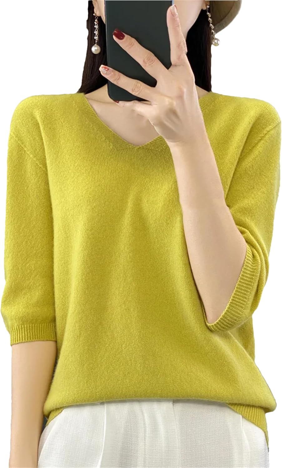 Material:WoolPattern Type:SolidGender:WOMENSleeve Length(Cm):ShortStyle:CasualSleeve Style:RegularCollar:V-NeckClothing Length:RegularElasticity:Medium StrecthFit Type:Regular Fit