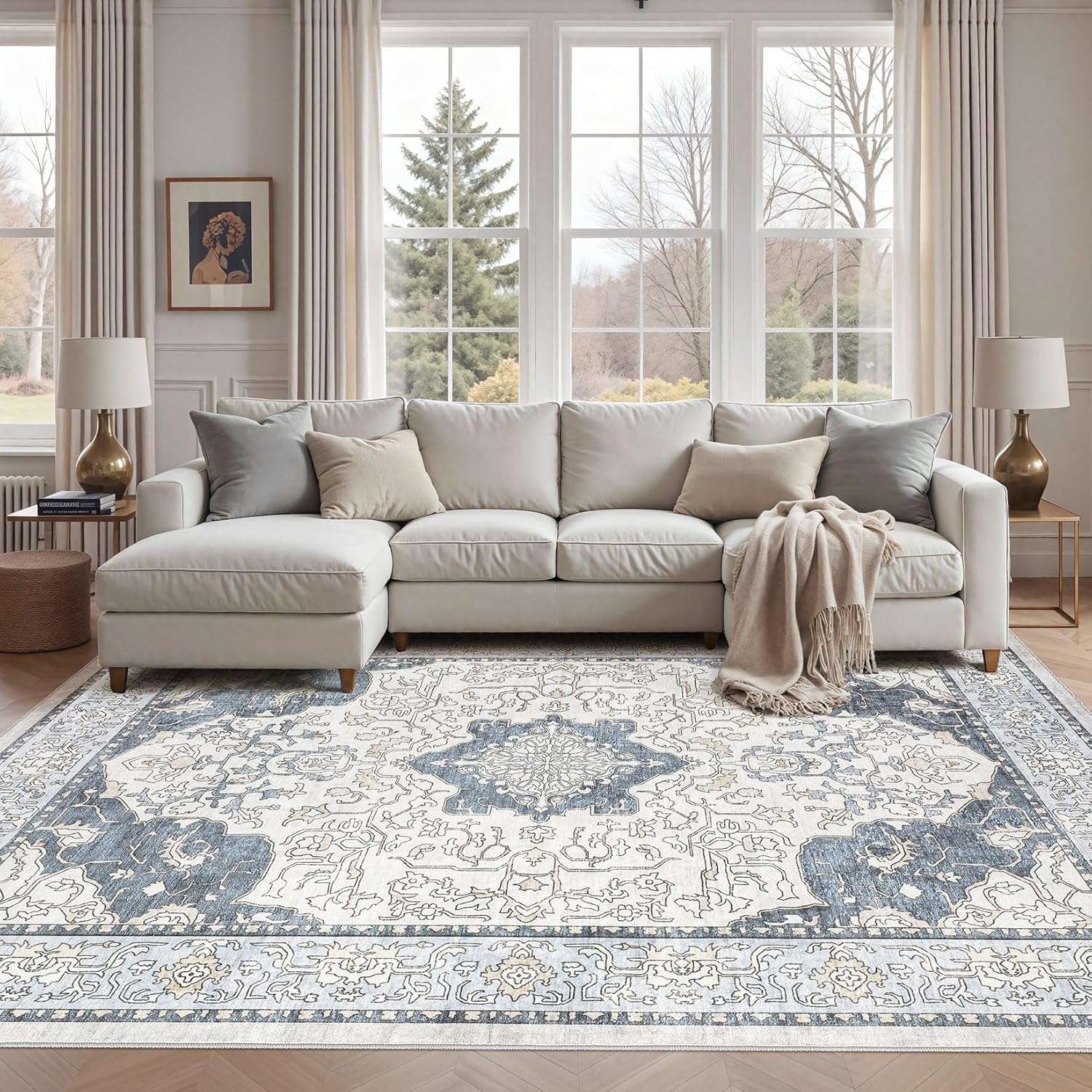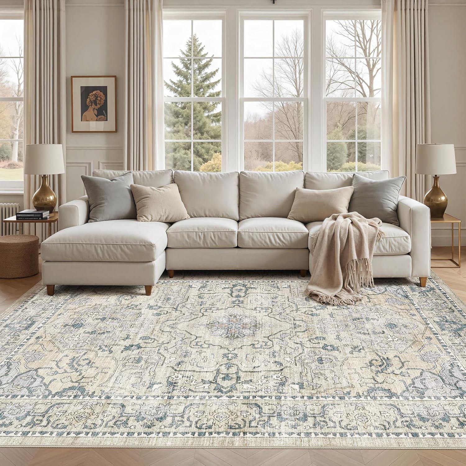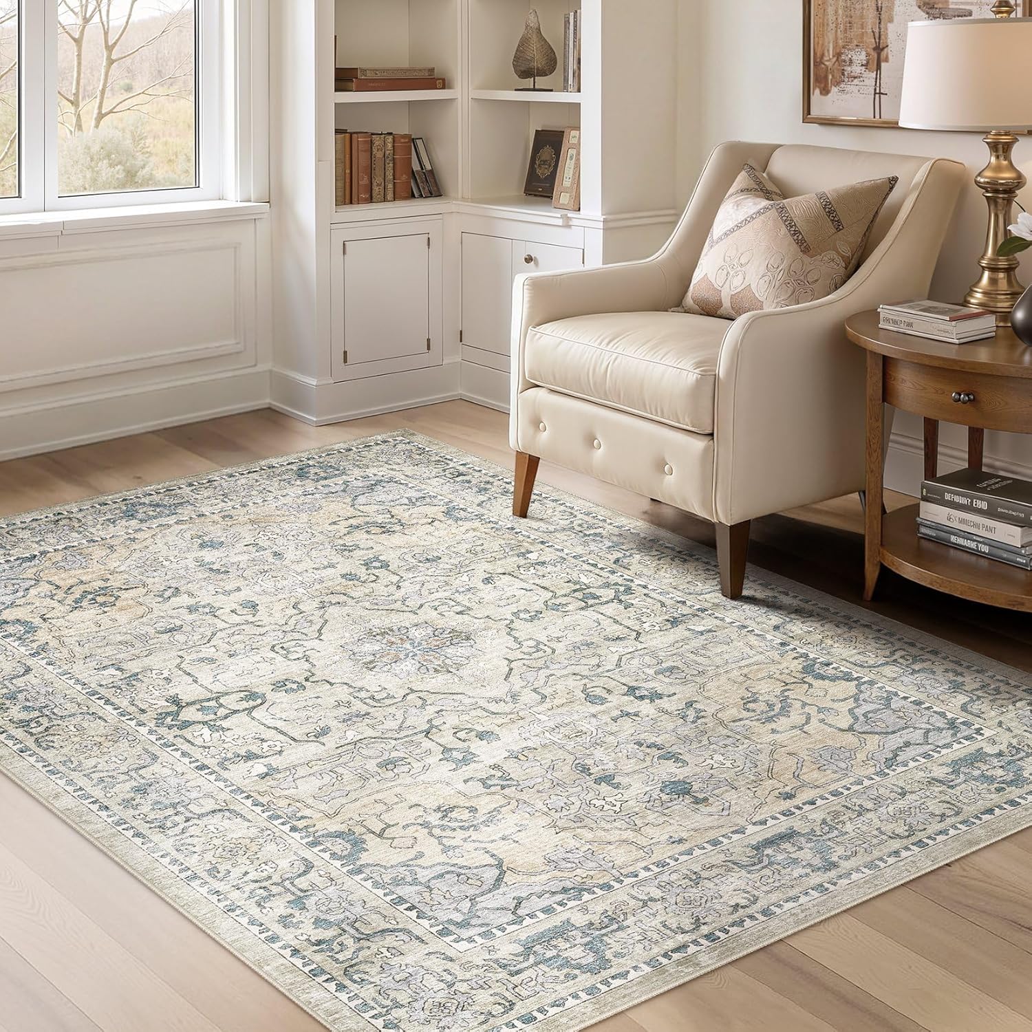 8x10 Area Rugs Large Washable Rugs for Living Room Soft Non-Slip Backing Stain Resistant Carpet for Bedroom Dining Room Vintage Rugs for Home Decor 8x10 Light Brown