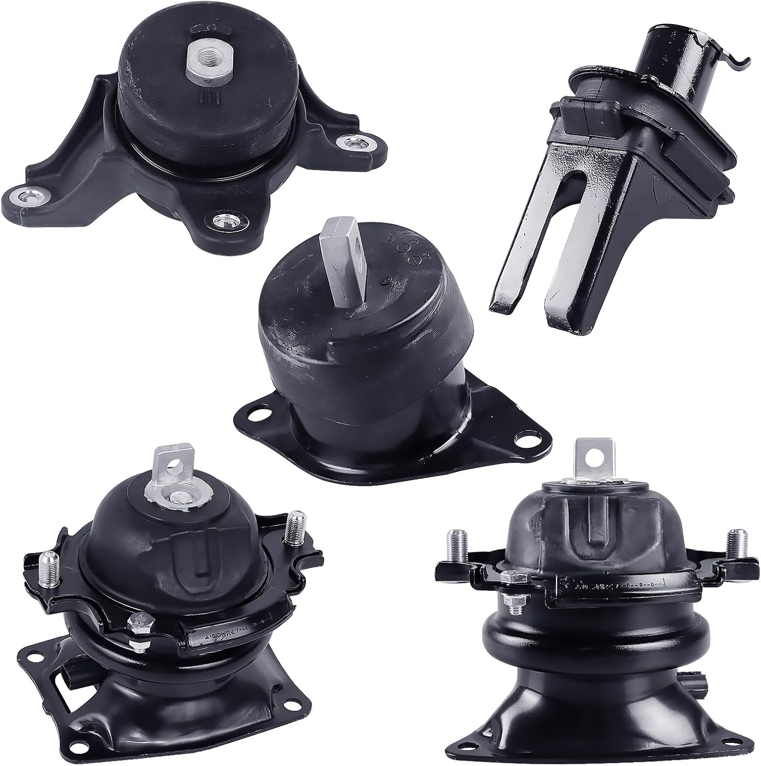 Vehicle Fitment:Engine Motor Mount Compatible with Honda Odyssey 2008 2009 2010 V6 3.5L, Replacement for A4575EL,A4587,A65017EL,A4557,A4558, Set of 5 Reference Number: Front Motor Mount Part Number#9737 A4575EL 50830TA1A01 Front Right Engine Mount Part Number#9411 9415 A4587 50820SHJA03 50820SHJA61 Front Rear Engine Mount Part Number#9662 A65017EL 50810-SH5-A63 Front Left Automatic Transmission Mount Part Number#9530 A4558 50805SHJA01 Front Rear Left Automatic Transmission Mount Part Number#9427 A4557 50806SHJA02 Enhancing Driving Comfort: Timely replacement of damaged engine mounts minimizes engine noise and maintains the stability of your engine and transmission, ultimately improving your driving experience. Material Composition: The Engine Motor Mount and Transmission Mount are crafted from premium alloy steel and rubber, ensuring reliability and stability. These engine mounts have undergone rigorous testing and demonstrate exceptional wear resistance, rendering them highly resistant to deformation and fracture. Tip: To ensure consistent balance and weight distribution, it is recommended to consider replacing the entire kit during the process, as this can help maintain optimal performance.