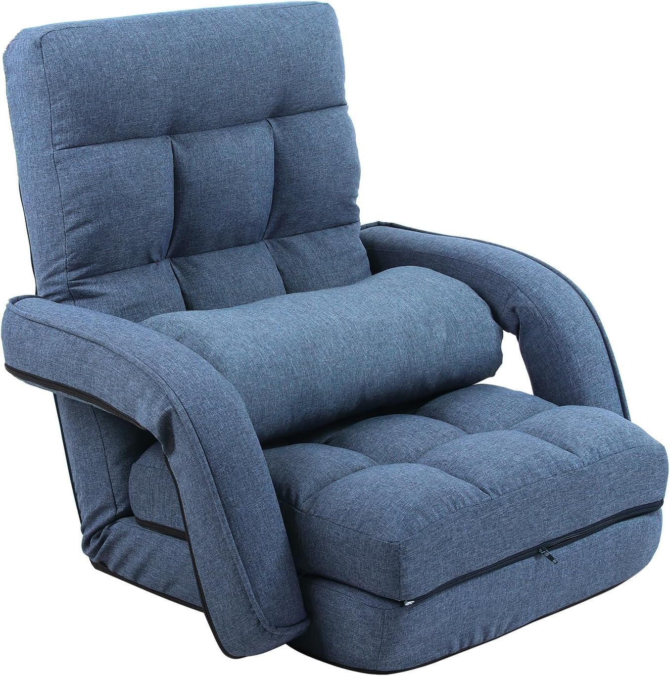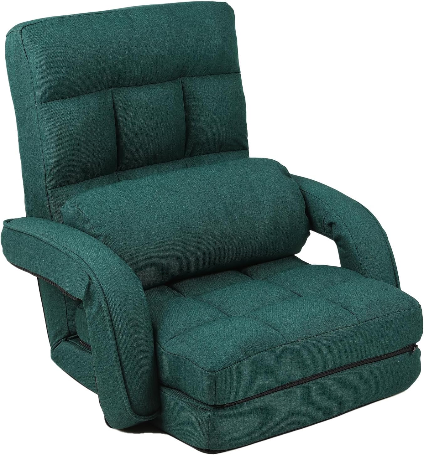 Material: Japanese KoYo mechanism, sponge and soft surface fabric.Usage scenarios:living room, home office, game room or any corner of your home, it can bring you extreme comfort and convenience.Overall Dimensions:66.53"D x 22.04"W x 27.16"H Weight: 18.07 lbsFeatures:It has up to 42 adjustable positions from 90 degrees to completely flat, which can perfectly fit the spine line of your body and help you find the most comfortable angle. Whether taking a nap, watching your favorite movie comfortably, or playing board games at a 90-degree angle, it can meet your various needs.Adopting a foldable packaging design, it is very convenient to move at home. It can be laid flat on the ground as a single bed or folded into a small piece and stored in the closet, saving space and being highly practical.The lounge chair is equipped with an additional pillow and ergonomically designed armrests. The pillow allows you to have a comfortable nap, and the armrests add pleasure to your reading time and help you relax in a comfortable position.The cushion of the floor sofa chair is removable and easy to clean. The cushion is made of breathable and wear-resistant cotton and linen fabric that does not pill. Filled with soft recycled cotton, it has excellent resilience and brings you a safe and comfortable experience.Tips: There is a slight color difference between the picture and the real thing