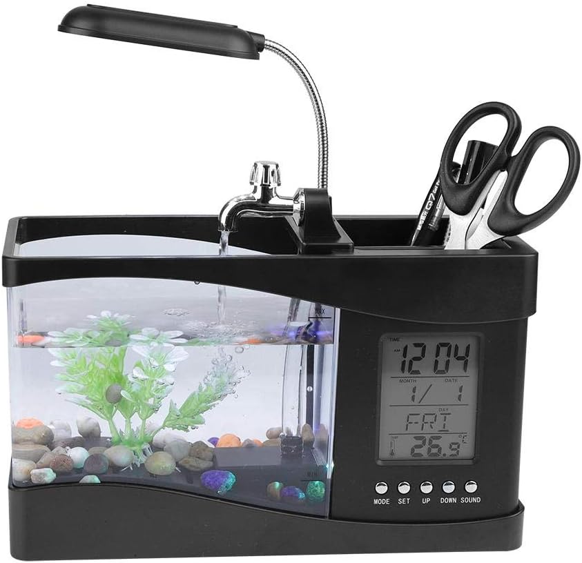 Description: This is a multifunctional fish . With LCD digital display, you can see the time, date and temperature clearly. Comes with colorful LED light, great illumination for the fish . Comes with a small drawer at the bottom and a transparent pen container, so you can storage some small stuffs such as keys and pens. Great fish for living room, bedroom and office etc. Come and get one, and you gonna love it!!! Specification: Condition: Brand new Color: Black / White (Optional) Material: Plastic Recharge: 3pcs AA batteries / USB 5V (Batteries not included) Size: 26.5 x 12.5 x 14cm / 10.43 x 4.92 x 5.51 inch (Approx.) Package Included: 1 x Fish 1 x Aquarium LED light 2 x USB cable 1 x bag of small stones 1 x Water tube 1 x Simulation aquatic plants 2 x User manual (English&Chinese) Notice: Please allow 1-3cm error due to manual measurement and make sure you do not mind before ordering. Please understand that colors may exist chromatic aberration as the different placement of pictures. Do not open the if the water doesn't reach the safety line.